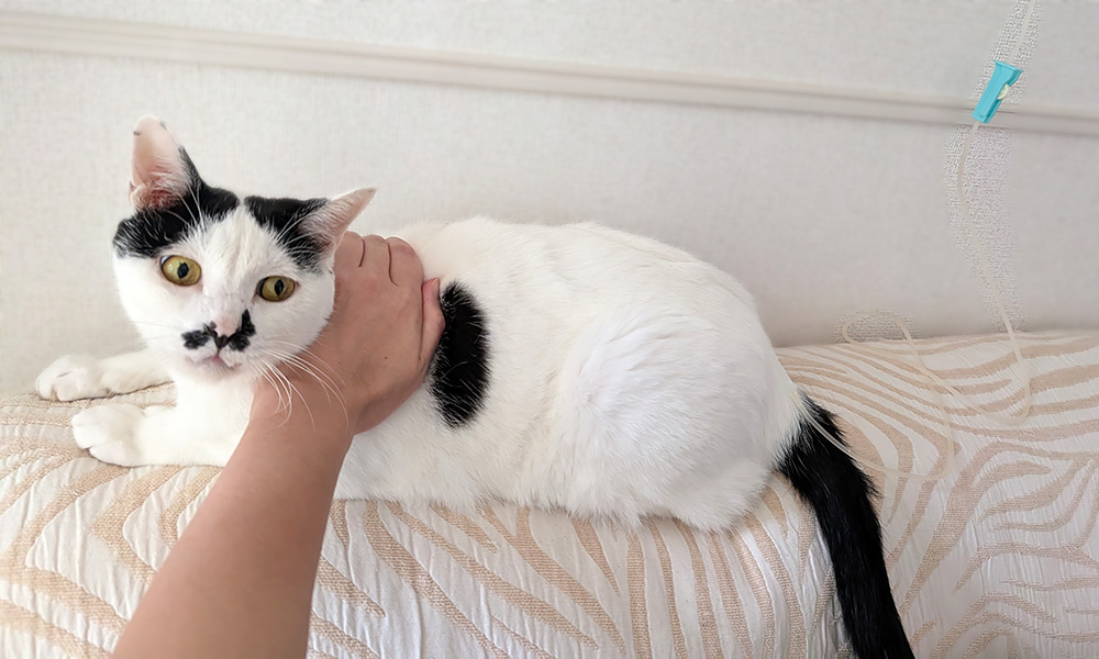 薄く3色が混じった感じの三毛猫さん。三毛猫さんはほんと同じ柄の子がいませんね!