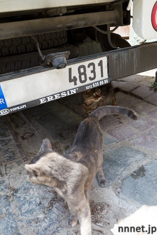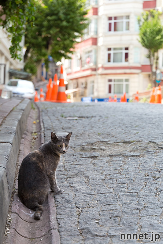 とにかく暑い日だったので、私も坂道を登る前にここで休憩をすることに。ちょうどビルの影にもなっている場所で、昼間過ごすにはちょうどいい場所です。猫たちはいいところを知ってるんですね!