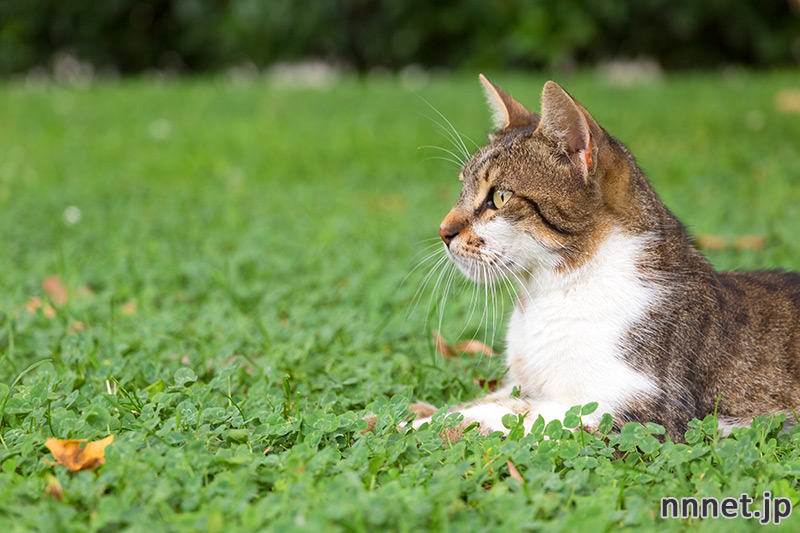 触っても、あまり私のことを気にしてくれません。あまりに人に慣れすぎてて、マイペースなキジ白さん。