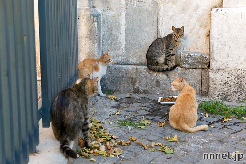イスタンブールの中心街を歩いていると、お店の前や道ばたで、猫用のお水やごはんの器をよく見かけます。その数は、今まで行ったどこの国よりも多いように思います。猫のことを考えている人がたくさんいるのは、とてもうれしいことですね!