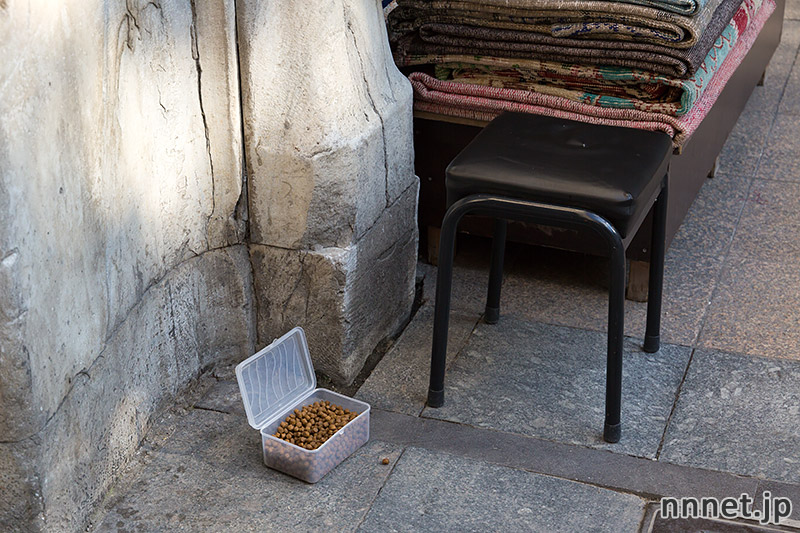 こちらは、モスクの敷地内に置かれているキャットフード。この4つ穴があいた器をよく見かけたのですが、日本でもキャットフードでも有名な「ネスレ(Nestle)」の文字がありました。