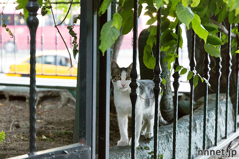 さらにその奥を見ると、黒白さんが1匹。道を歩く人たちを眺めていました。