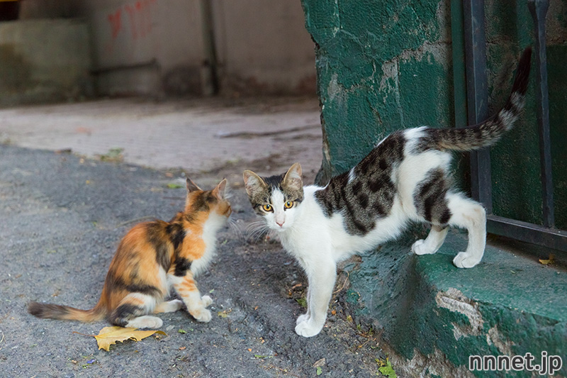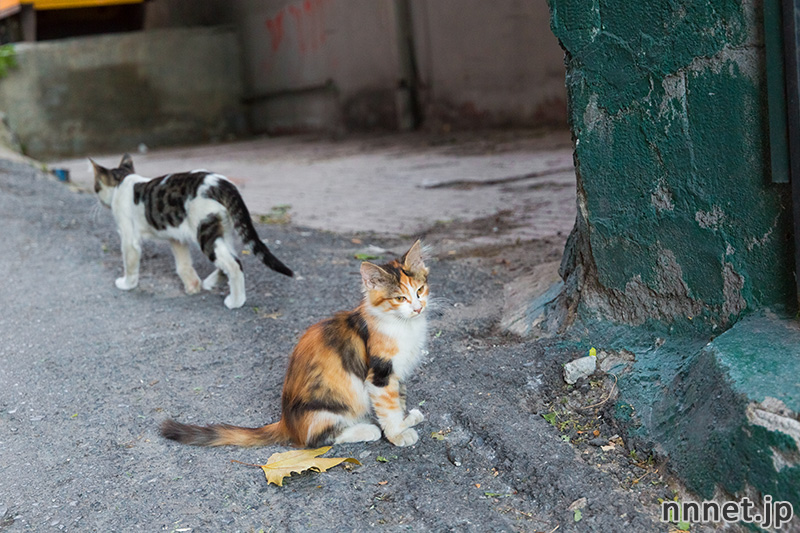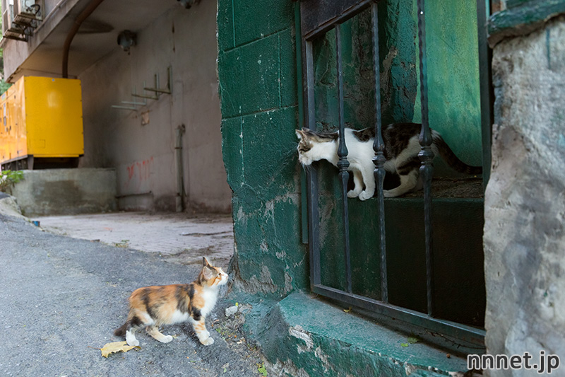夕方6時すぎ、薄暗くなってきたイスタンブールの路地裏で、たくさんの猫たちに出会いました。