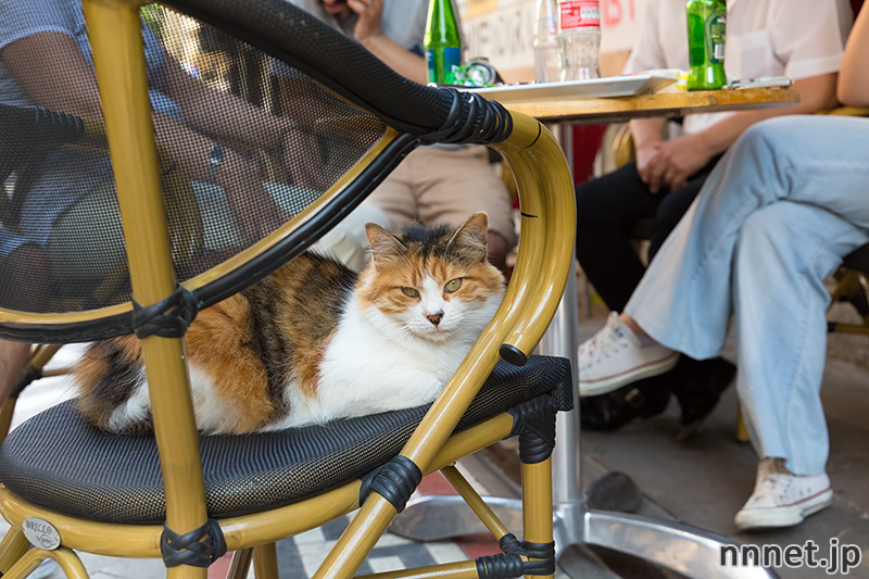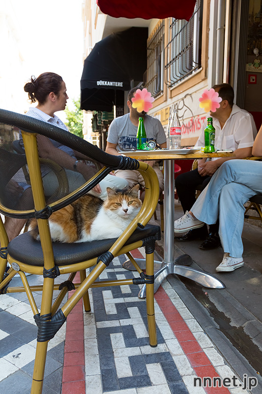 しかも、一番左の足だけ写っている男性、テーブルから遠くて、猫の方が良い席です(笑)あとからきたけど、猫をどかせなかった・・・風に見えます。