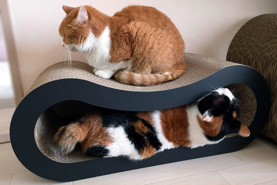 猫はみんな大好き!段ボール製の猫爪研ぎ。爪研ぎは、消耗品なので、表面が潰れてボロボロになったりカスが出たりしたら、取り換えてください。段ボール製の場合、逆さまにしてトントンと払ってみると、思ったよりも研ぎカスが出ます!たまに掃除すると、想像以上に出るのでびっくり。